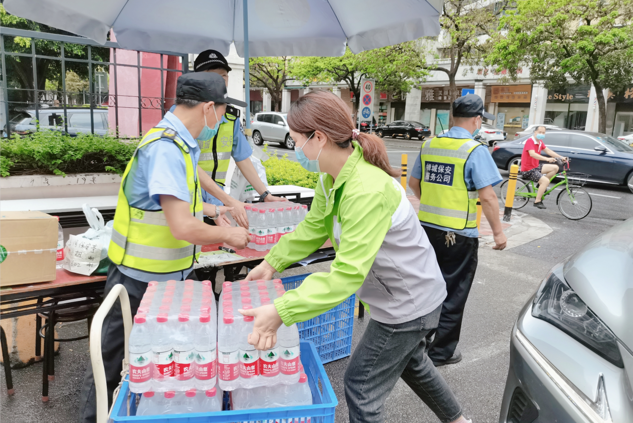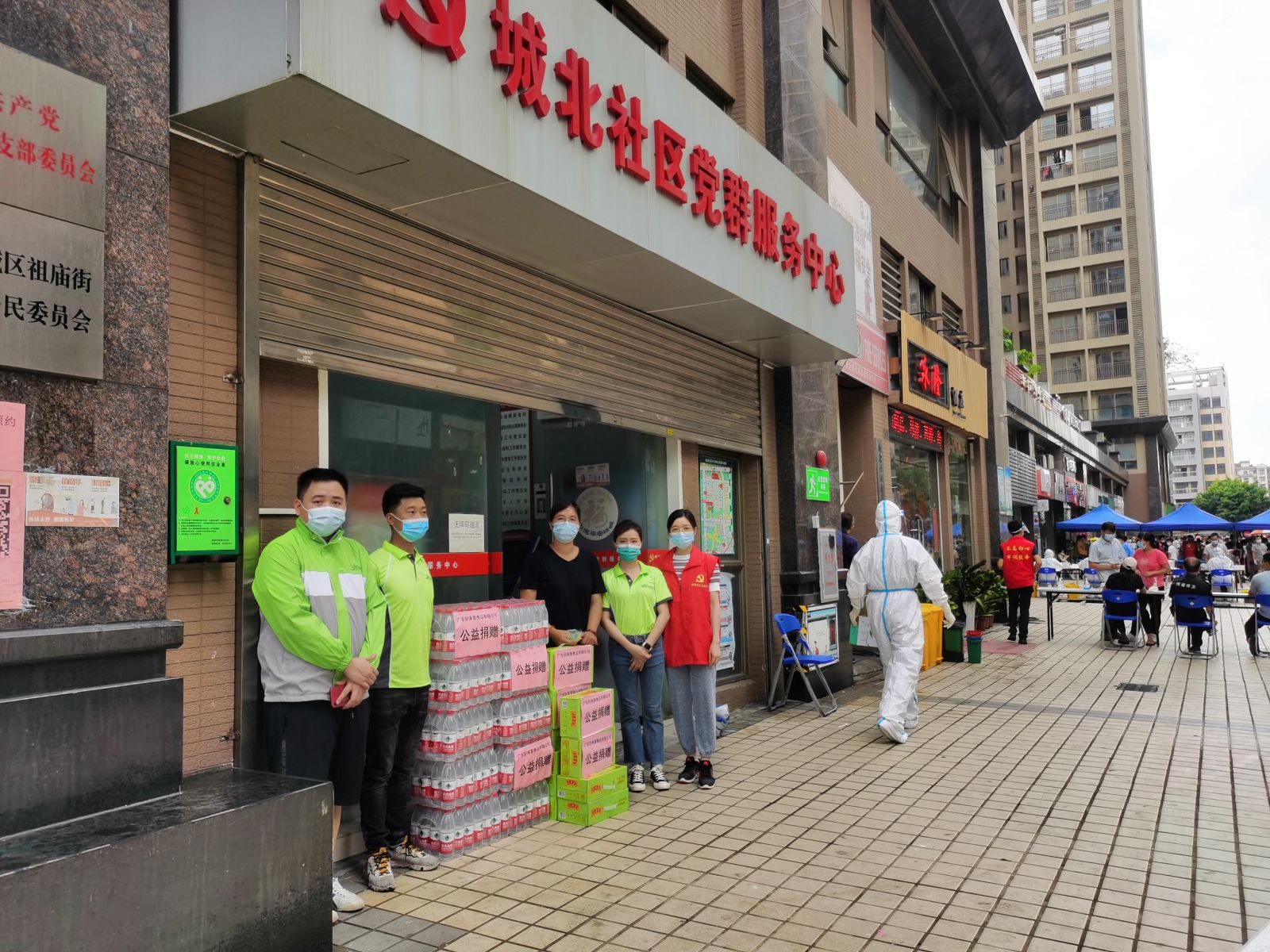 在总经理罗瀚的亲自带队下,组织了专门的疫情防控公益义工队,顶着三十多度高温又转暴风雨的恶劣天气,把捐赠物资妥妥地送到了各个社区。